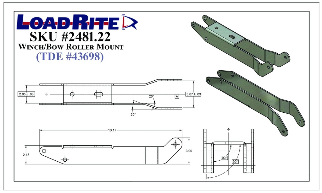 Winch Support Bracket 16.5" Long For 3" Roller Loadrite# 2481.22